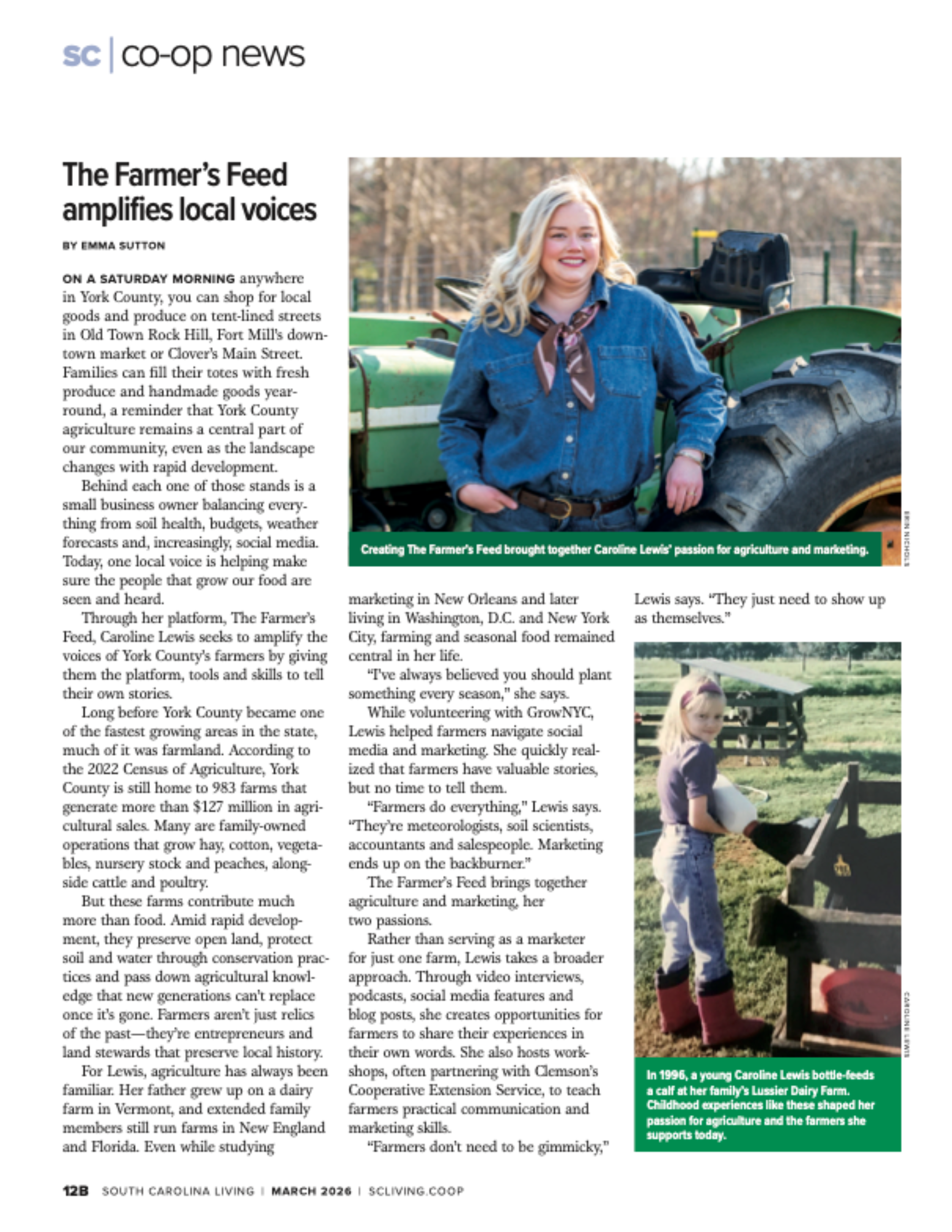 Caroline Lewis is the founder of The Farmer’s Feed, a South Carolina-based media and marketing platform helping farms and rural communities grow.